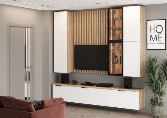 • Встроенный врезной профиль для подсветки + рассеиватель по центру обеих боковин (по всей высоте) +