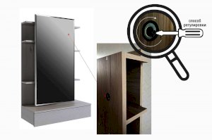 Крепится к стене на навесы, что позволит установить его на необходимой вам высоте. Навесы по высоте регулируются и плотно прилегают к стене.