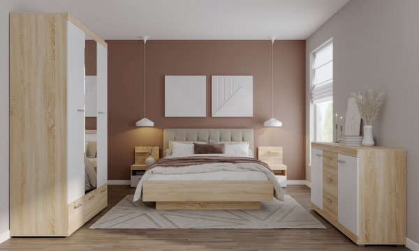 Дуб Сонома/Белый глянец