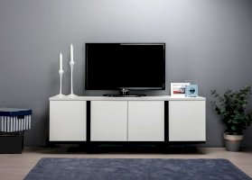 Это графичное сочетание, которое всегда на пике моды. Монохромный декор тумбы ТВ легко впишется в самый сложный интерьер. При изготовлении используются качественные ЛДСП толщиной 22 мм и 16 мм, кромка толщиной 2 мм и 1 мм. Такие материалы придают солидность внешнему виду, обеспечивают надежную основу и более долгий срок службы. В столешнице имеется вырез под провода для подключения мультимедиа техники, а регулируемые опоры легко компенсируют неровности пола.