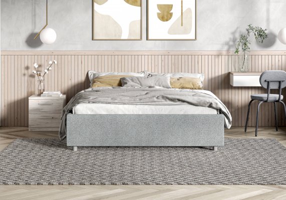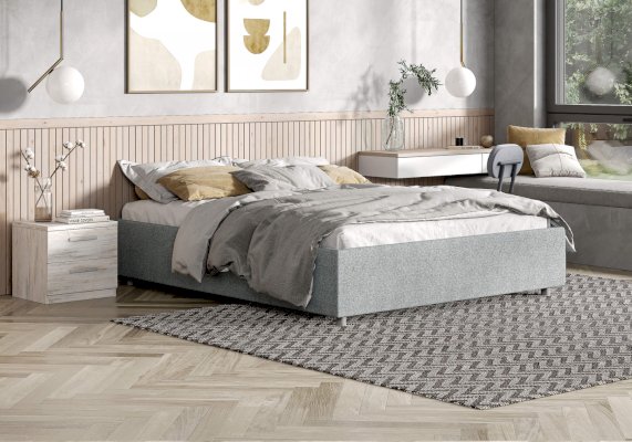 Стильная интерьерная кровать без спинки. Модель изготовлена из ДСП. Преимуществом кровати являются съемные чехлы царг, что позволяет легко ухаживать за обивкой или менять цвет кровати в зависимости от смены интерьера. В комплект кровати входит кроватное основание. Каркас основания выполнен из металла, ламели - из берёзы. Кровать без спинки Scandinavia при необходимости может включать подъемный механизм с бельевым ящиком.