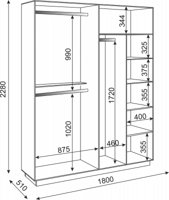 • Размер:(Ш×Г×В): 1800x510x2220 мм