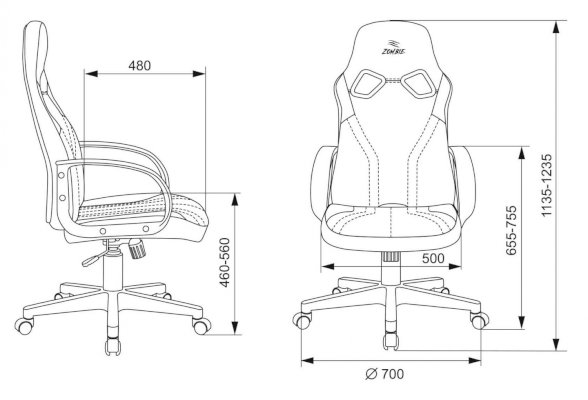 Высота с подлокотниками: 655-755