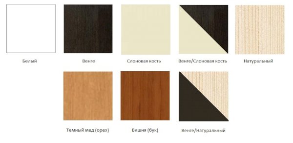 Цвета: Венге-Натура, Белый, Венге, Венге-слоновая кость, Бук, Натура, Темный мед, Слоновая кость