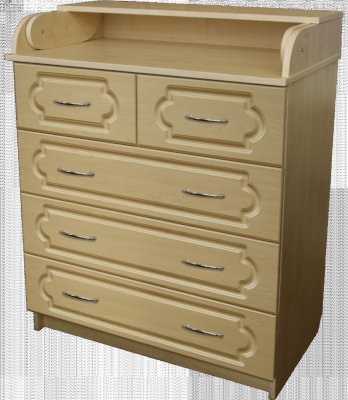 По вашему желанию верхняя крышка комода откидывается и предоставляет большую поверхность для пеленания младенца и массажа. Используемые в производстве комода материалы отличаются высоким качеством.