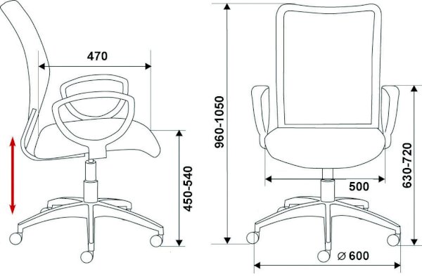 Высота с подлокотниками: 630-720